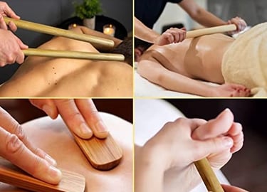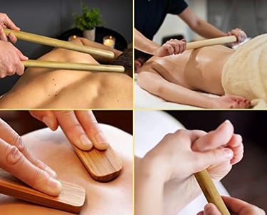 Enjoy the warmth of heated bamboo sticks combined with massage strokes to enhance relaxation and relieve tension.